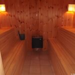Zaplecze sanitarne: 3 toalety, 4 prysznice, ciepła i zimna woda, sauna, pralka i suszarka.
